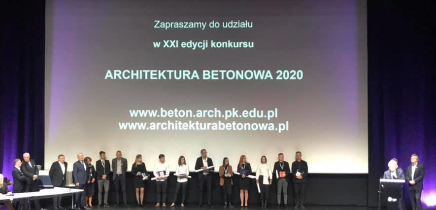 W czasie Biennale Architektury 2019 w ICE Kraków, w dniu 09 października 2019 odbyła się uroczystość ogłoszenia wyników XX edycji Konkursu Architektura Betonowa 2019 i otwarcie wystawy pokonkursowej. W uroczystości wzięli udział: Prorektor PK, dr hab. inż. arch. Andrzej Białkiewicz, Prodziekan Wydziału Architektury Politechniki Krakowskiej Dr inż. arch. Rafał Zawisza, Prodziekan Wydziału Architektury Politechniki Krakowskiej dr inż. arch. Kinga Racoń-Leja, Prodziekan ds. Ogólnych WA PW dr inż. arch. Jerzy Grochulski, Prodziekan ds. Współpracy z Otoczeniem Społeczno-Gospodarczym WA PŚ Dr inż. arch. Tomasz Bradecki, Dyrektor Biura Stowarzyszenia Producentów Cementu prof. Jan Deja, szef marketingu Stowarzyszenia Producentów Cementu inż. Zbigniew Pilch, prezes SARP