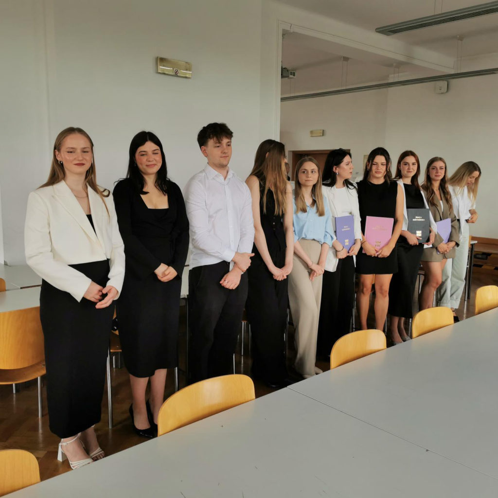 Dyplomanci: Katarzyna Kuźniar, Julia Łukaszewska, Michał Nowak, Maryna Babiy, Zuzanna Kamrowska, Wiktoria Karpińska, Oliwia Janaszek, Natalia Józefczyk i Agnieszka Jarząbek.