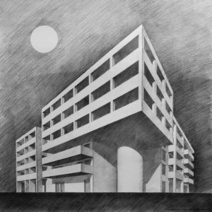 7. Rysunek odręczny perspektywiczny. Rysunek winien prezentować ideę projektu budynku.