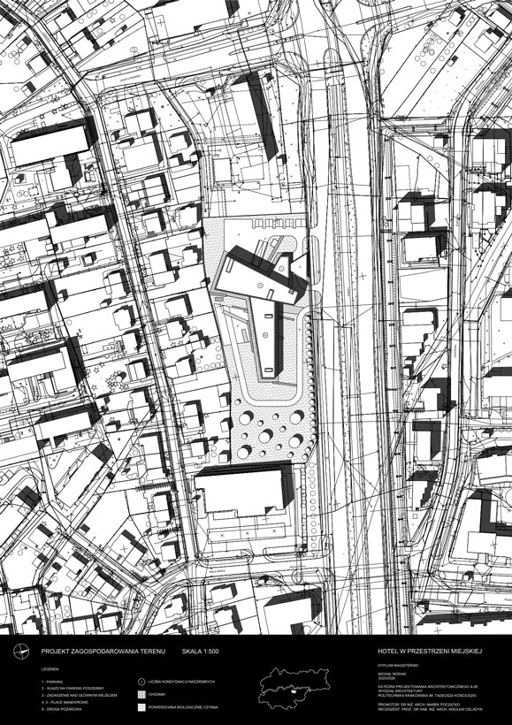 Tytuł: HOTEL W PRZESTRZENI MIEJSKIEJ. PROJEKT BUDYNKU HOTELOWEGO PRZY UL. LIPSKIEJ W KRAKOWIE.
