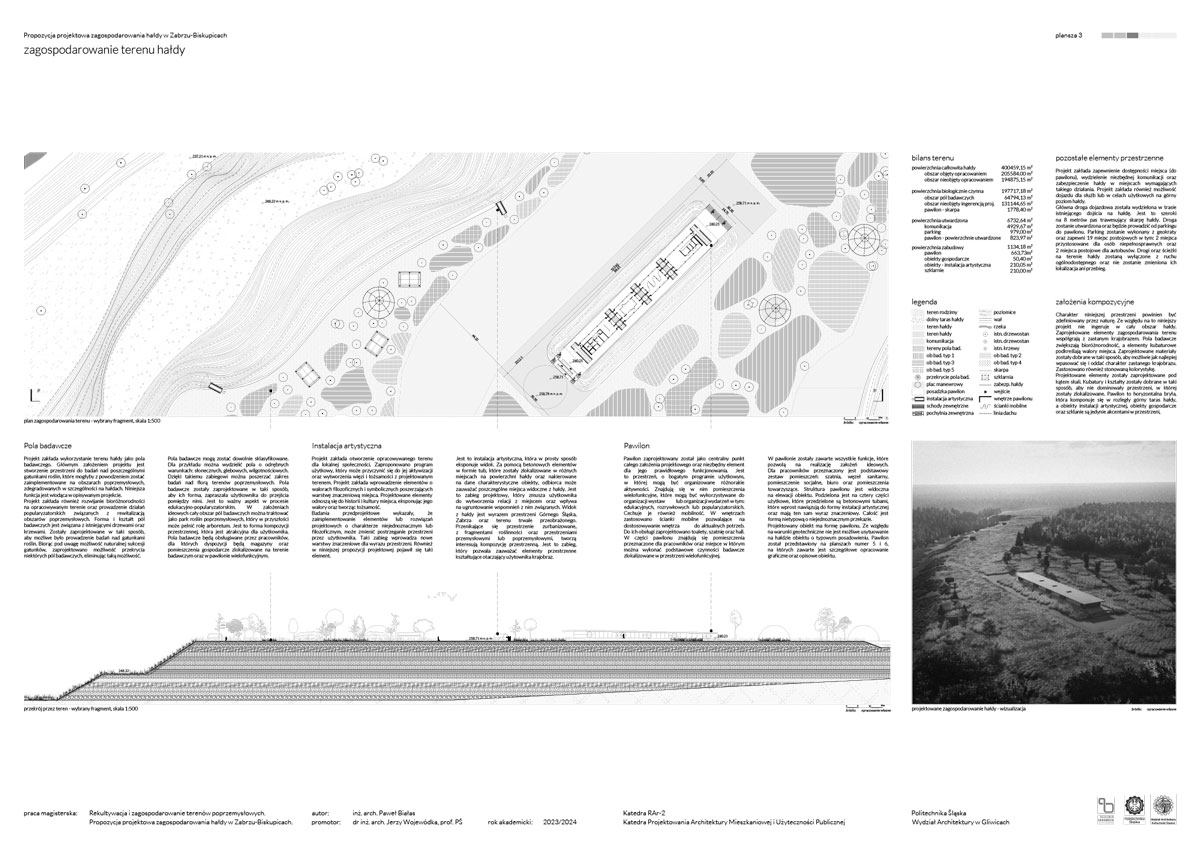 Tytuł: Rekultywacja i zagospodarowanie terenów poprzemysłowych. Propozycja projektowa zagospodarowania terenu hałdy w Zabrzu-Biskupicach.
