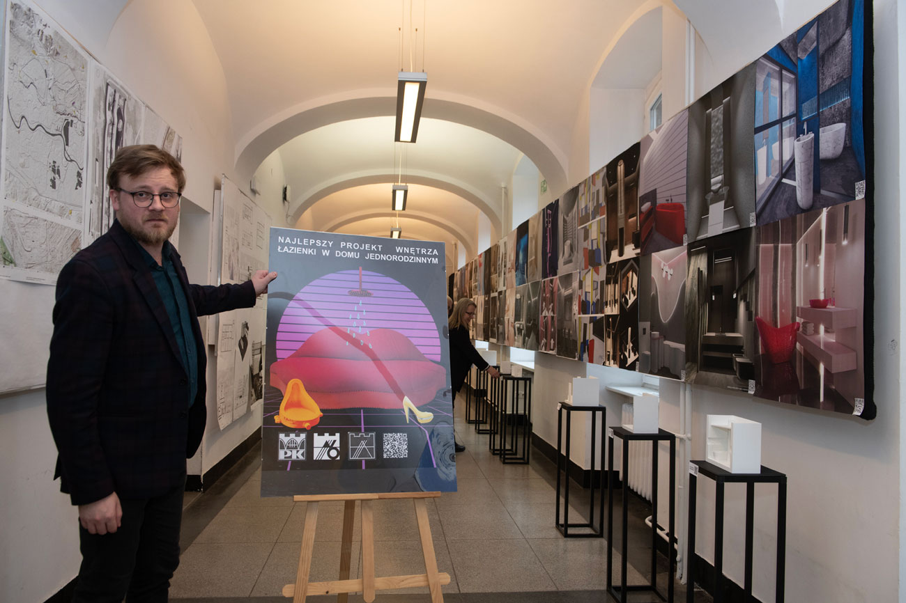 24 lutego 2025 r. o godz. 13:00 w kuluarach pierwszego piętra budynku WA PK miało miejsce uroczyste otwarcie wystawy prac studentów II roku 3 semestru studiów WA PK „PROJEKTÓW WNĘTRZA ŁAZIENKI W DOMU JEDNORODZINNYM”.