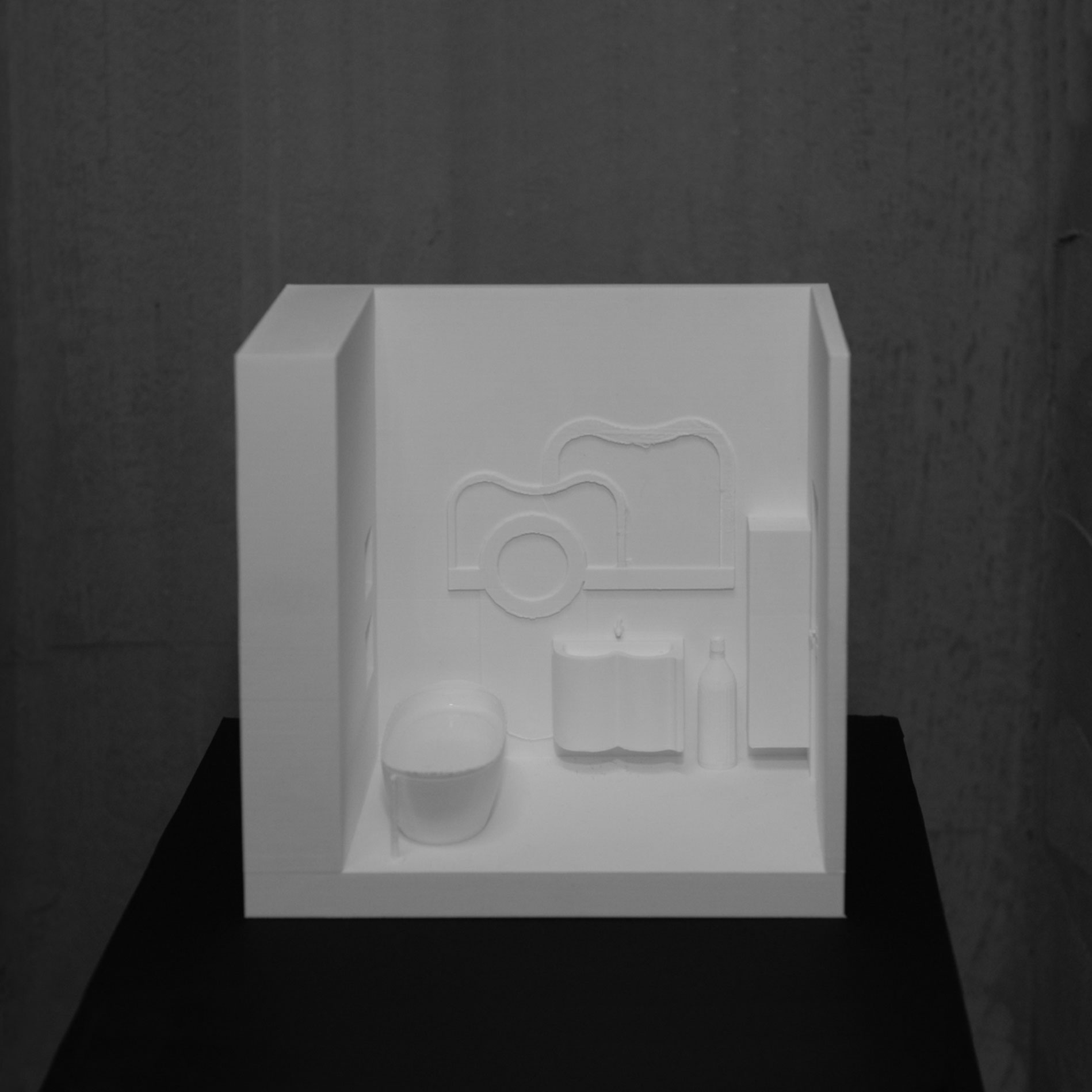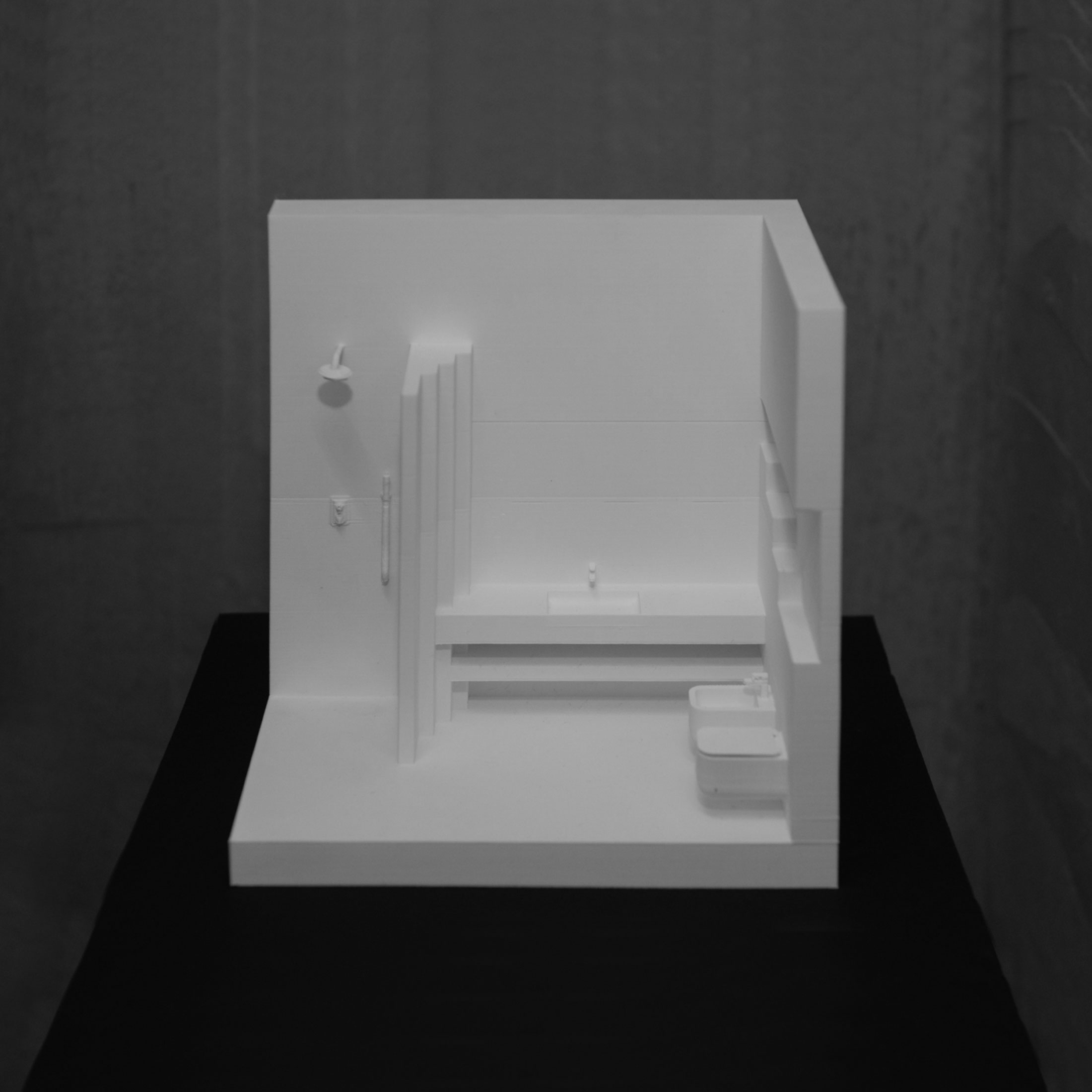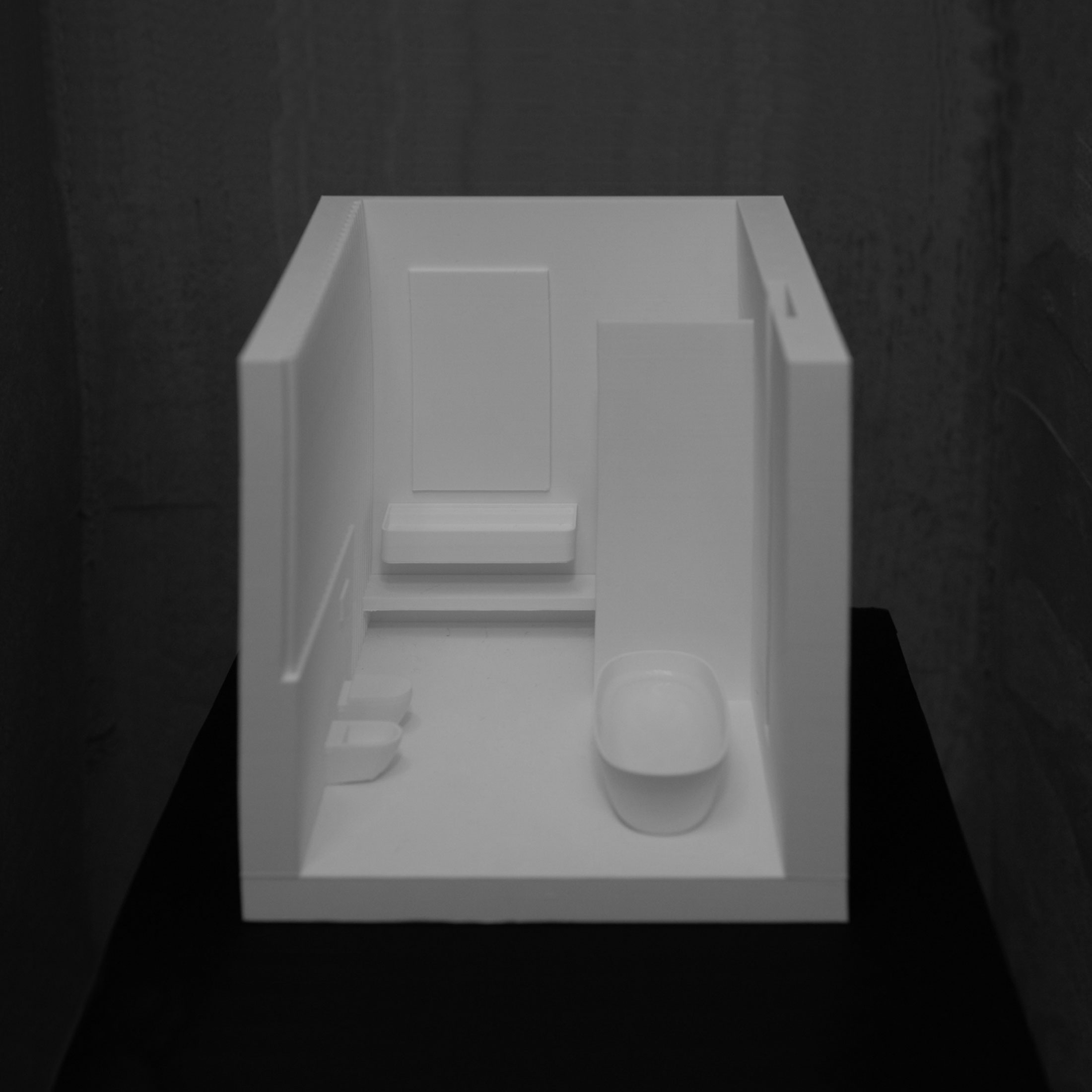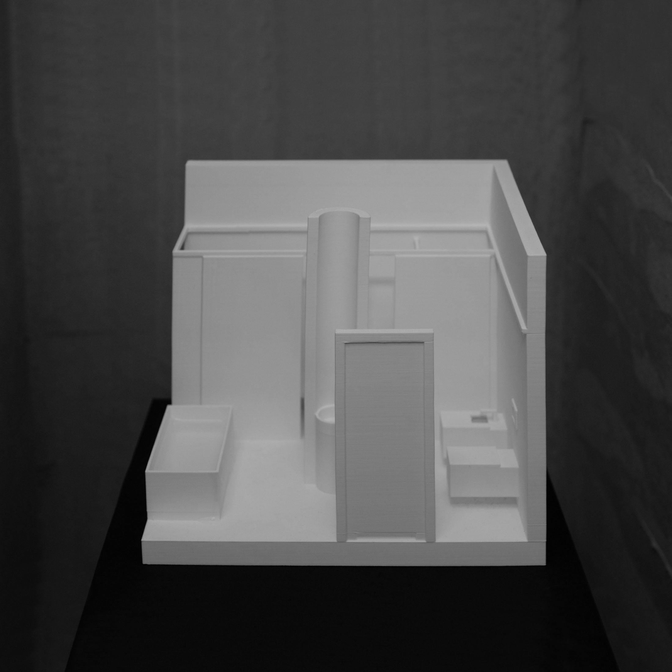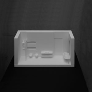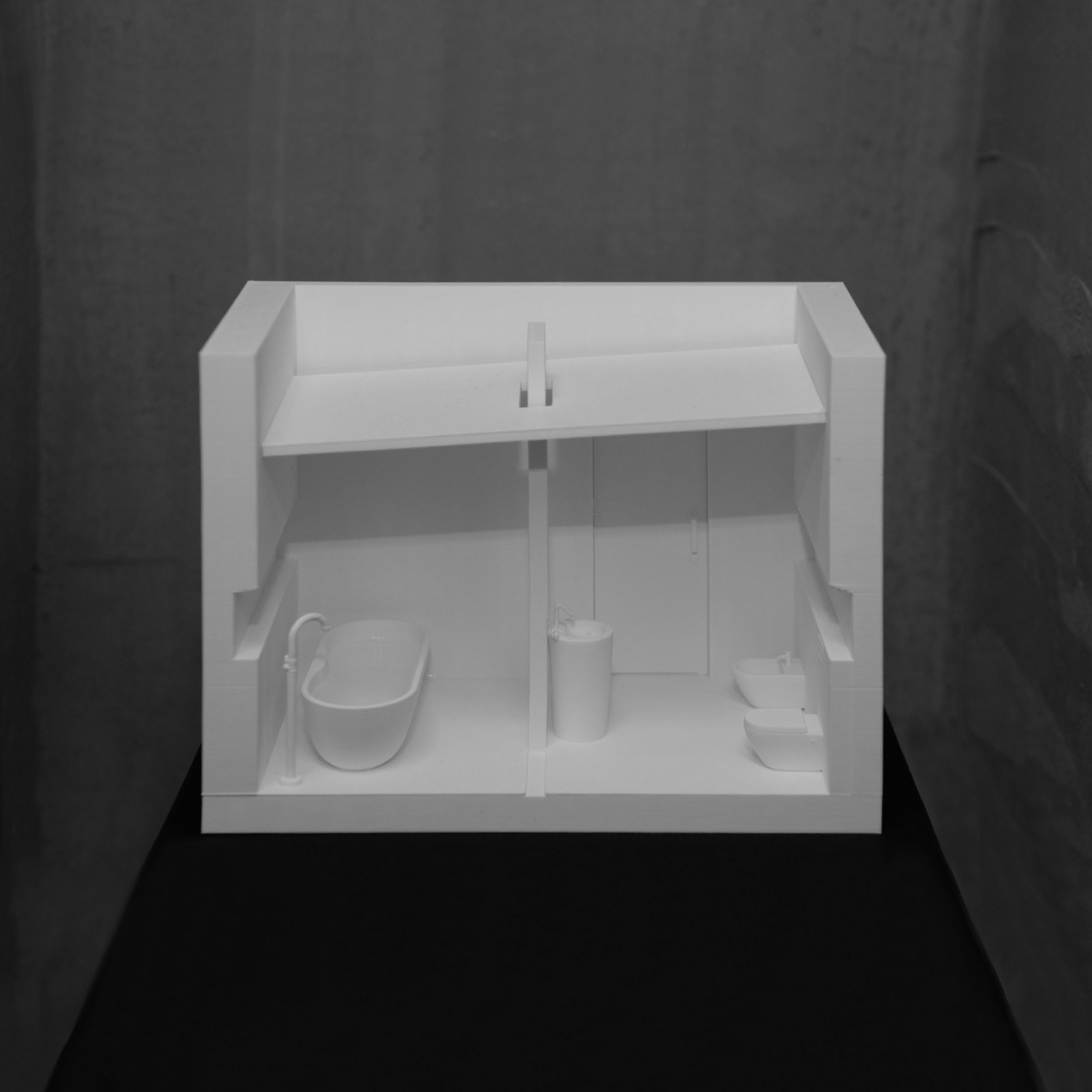 Projekt koncepcyjny wnętrza łazienki głównej stanowi część projektu domu jednorodzinnego, realizowanego w ramach tematu Dom albo gra z sześcianem.